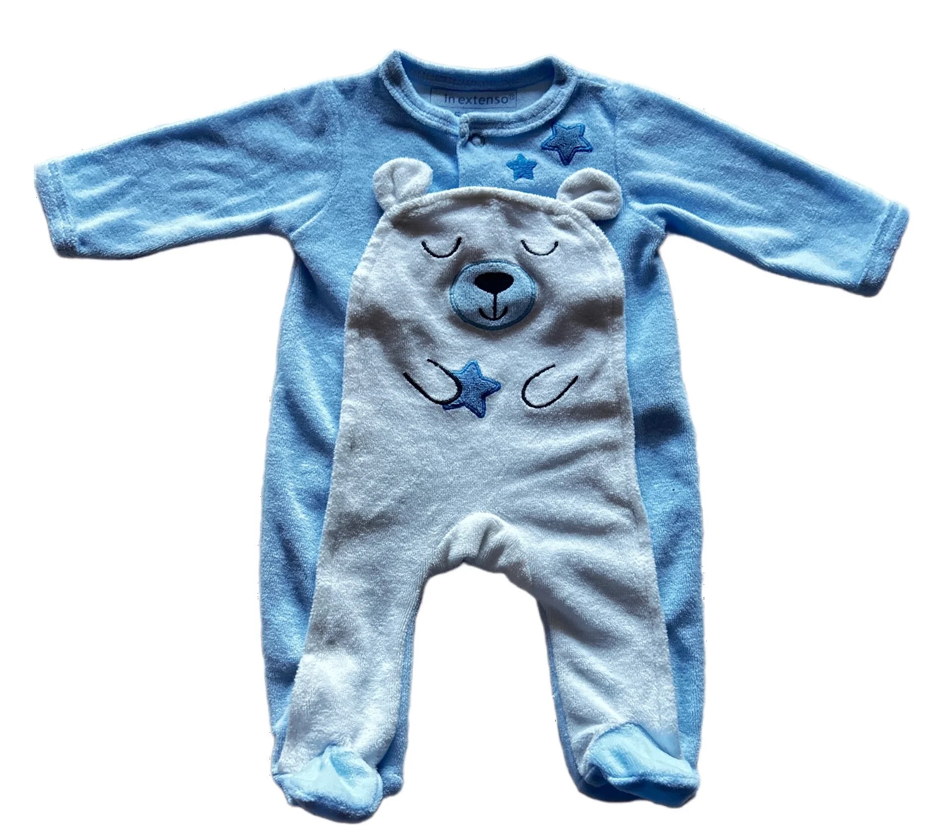 Pyjama velours ML bleu 1 mois In extenso
