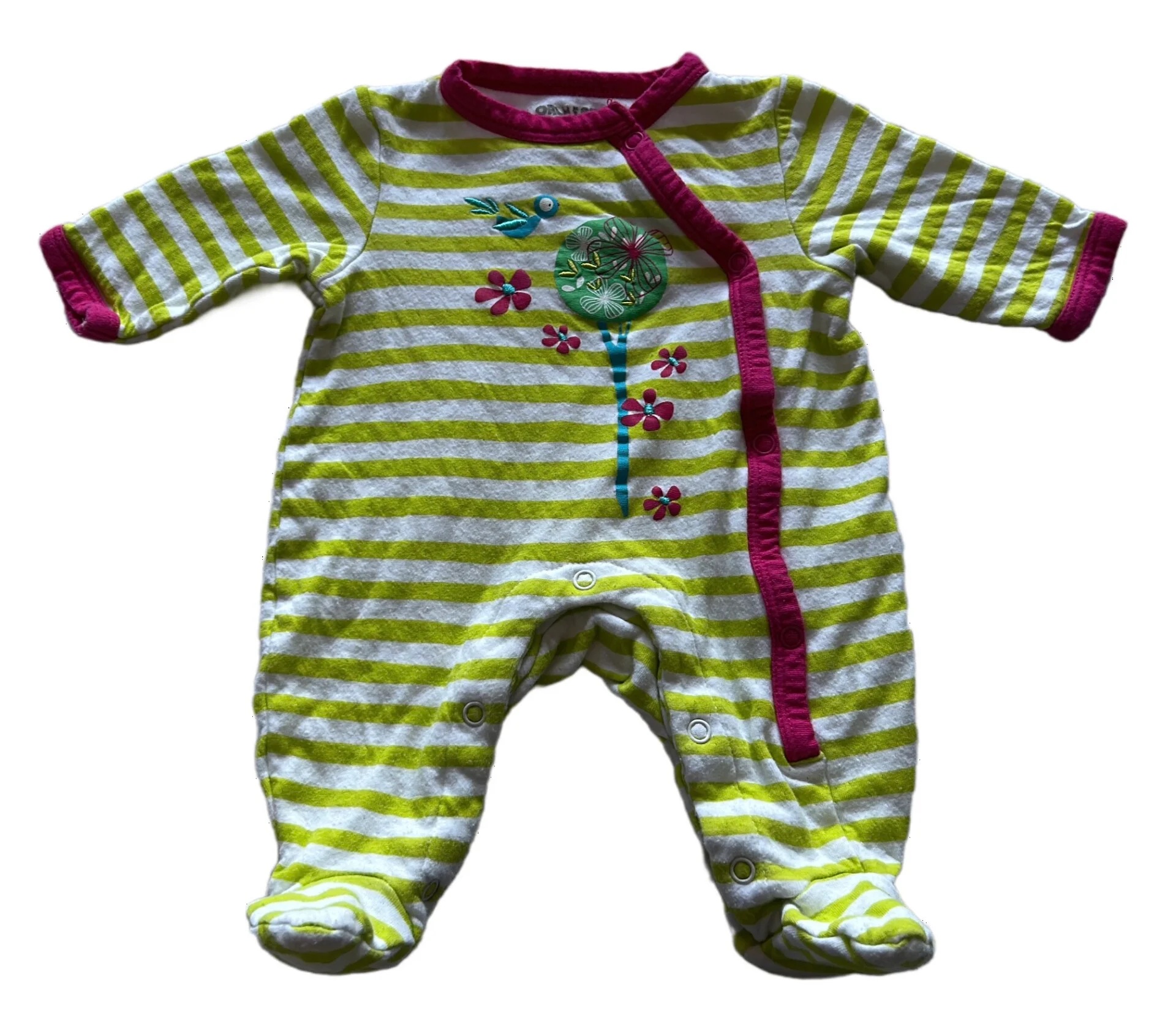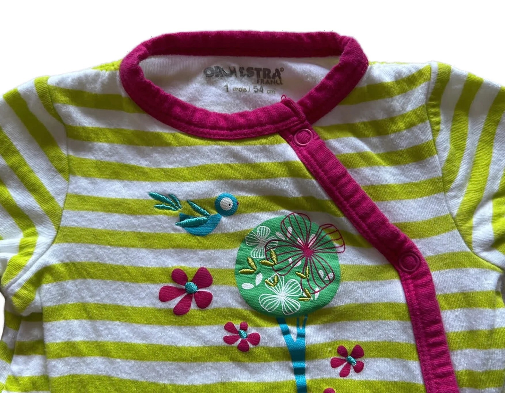 Pyjama léger ML rayé vert et blanc 1 mois Orchestra