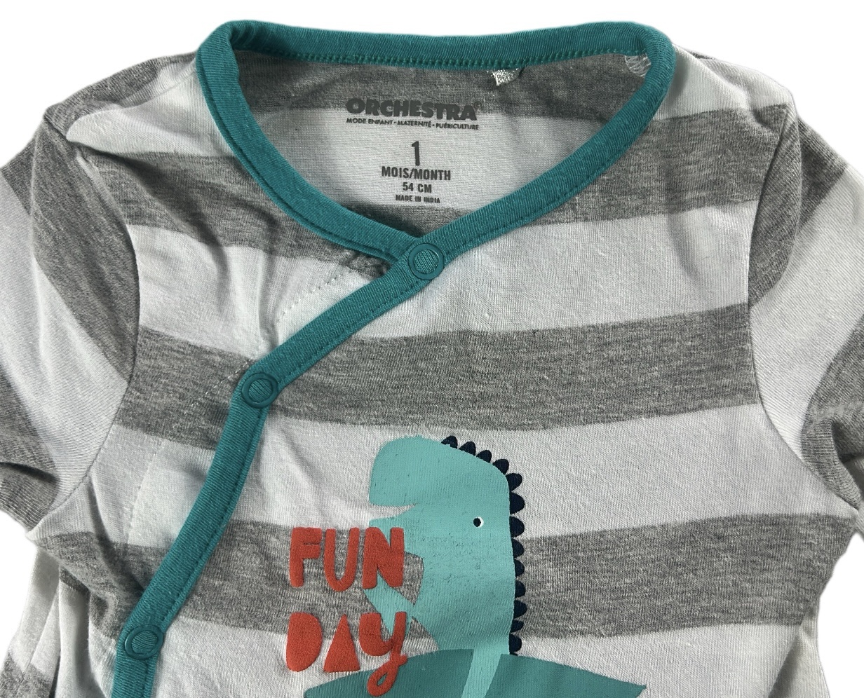 Pyjama léger ML rayé gris et blanc 1 mois Orchestra