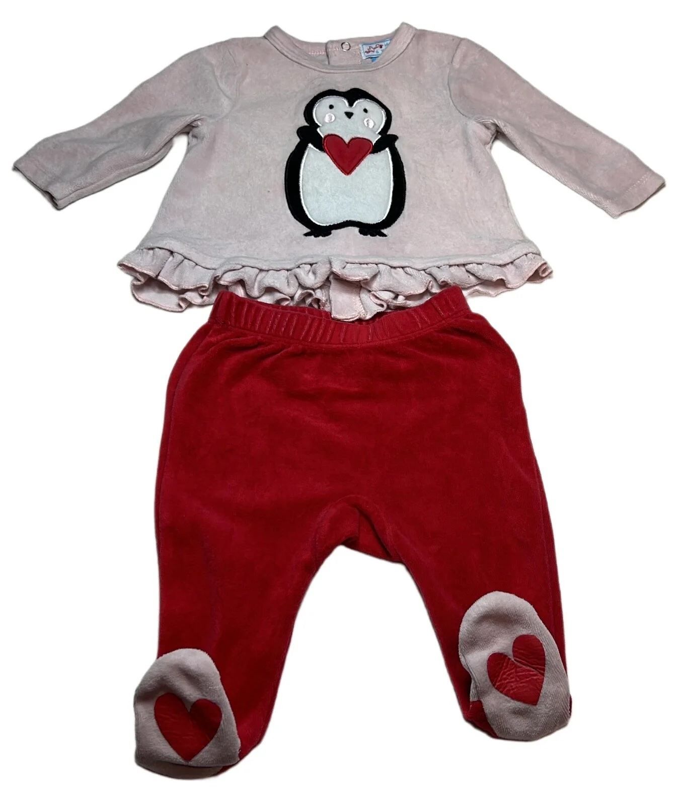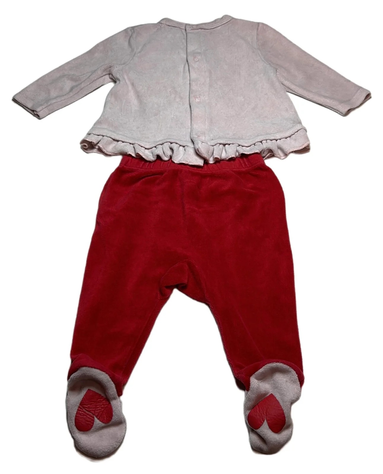 Pyjama velours ML 2 pièces rose et rouge 6 mois Manon et Valentin