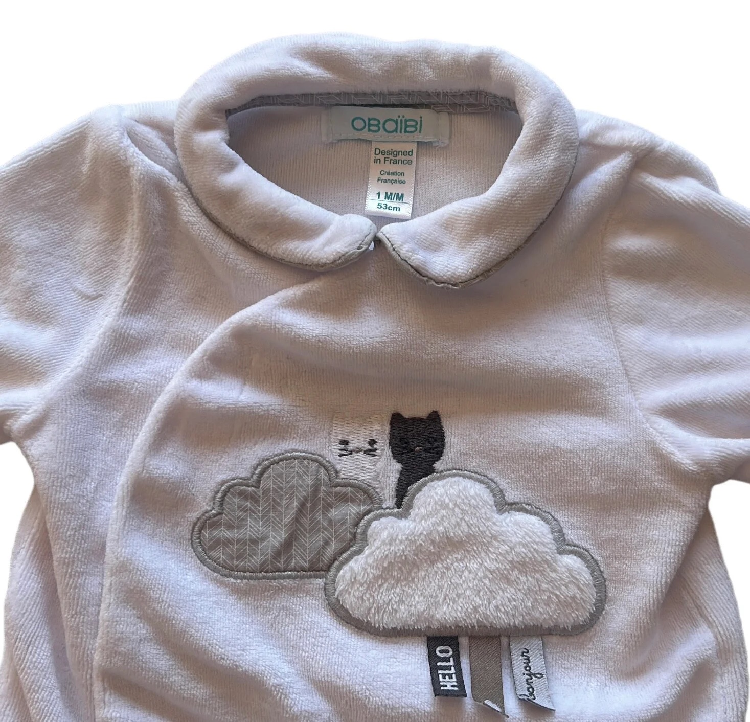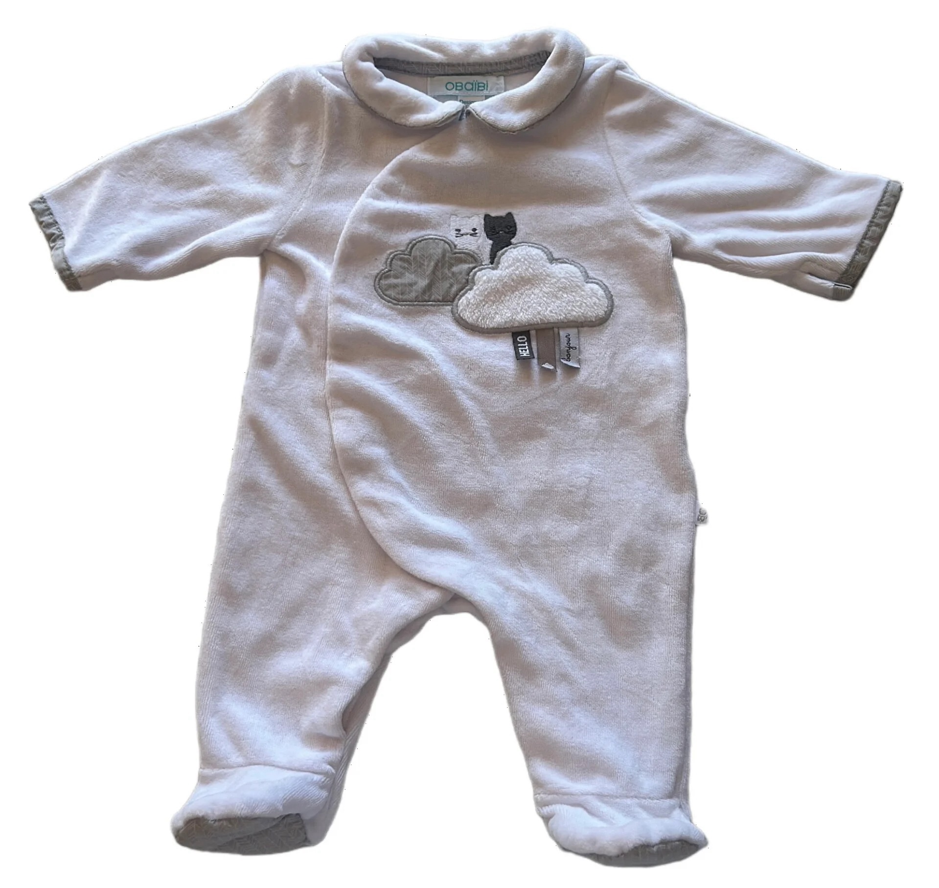 Pyjama velours ML blanc 1 mois Obaïbi