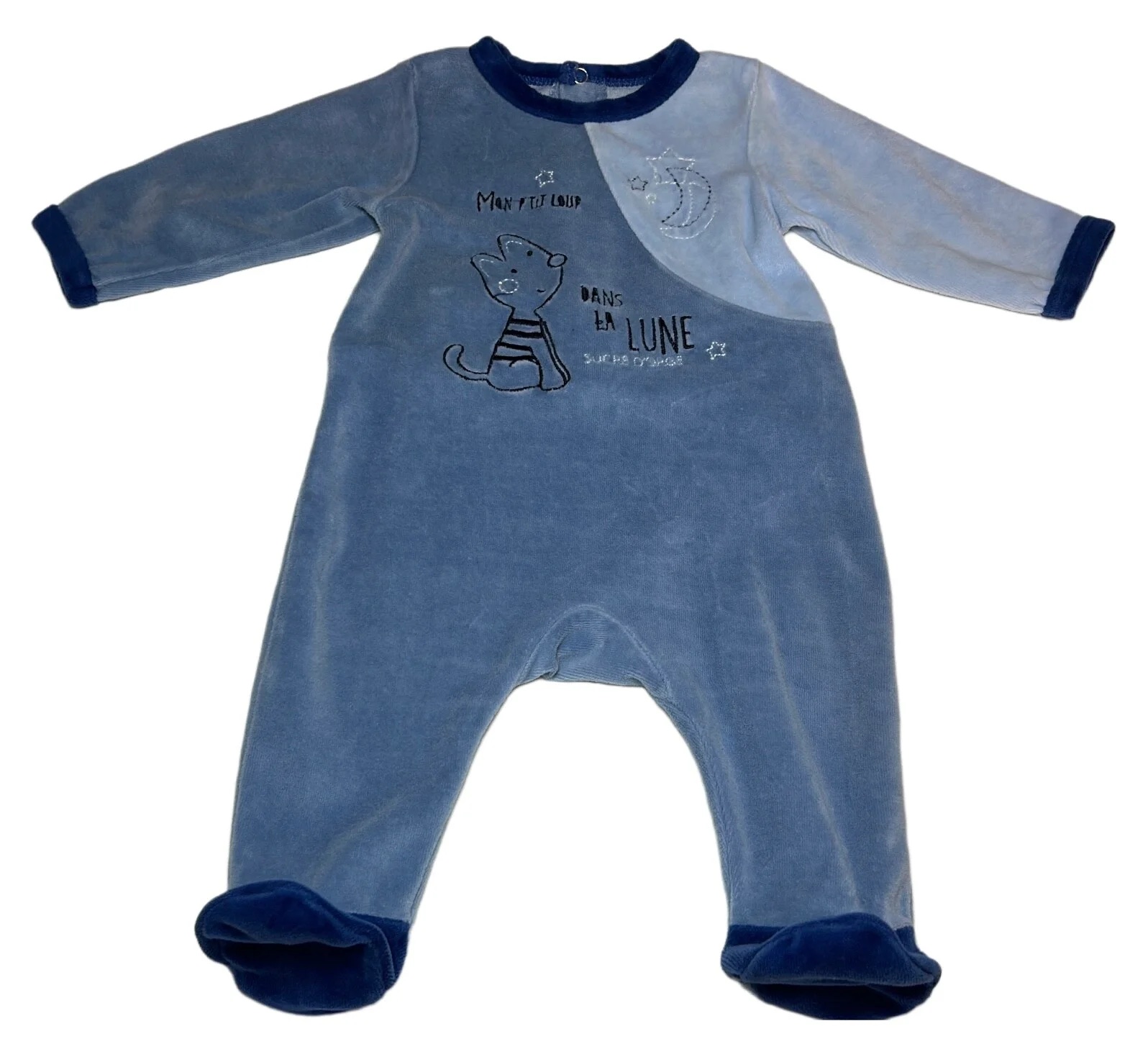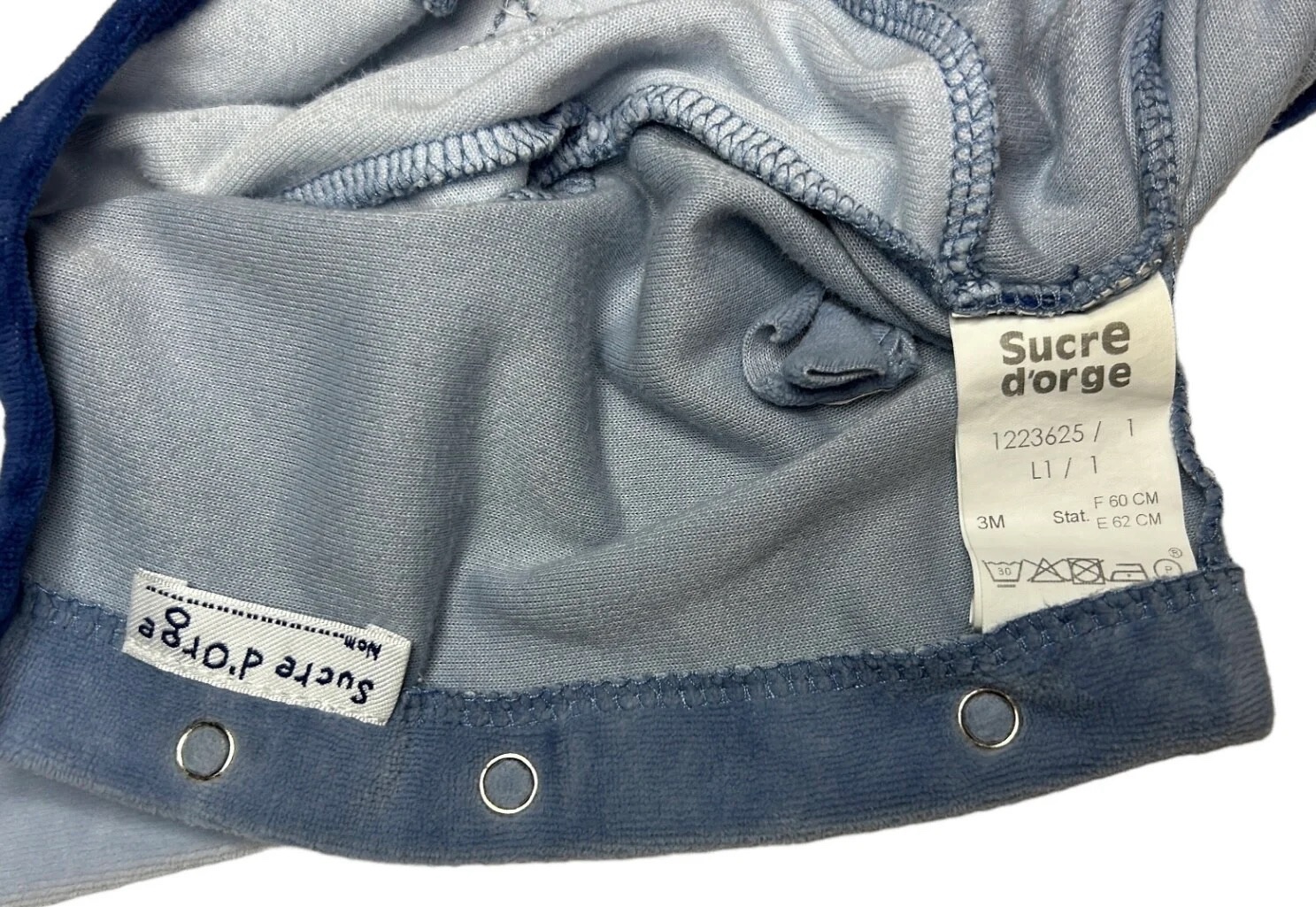 Pyjama velours ML bleu 3 mois Sucre d’Orge