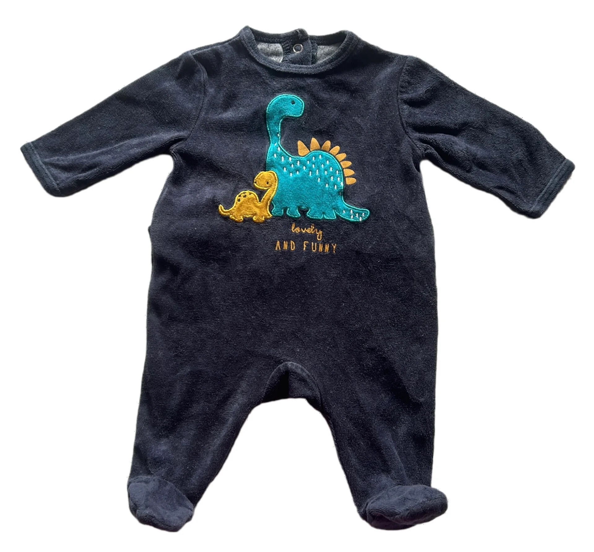Pyjama velours ML bleu foncé 1 mois Kiabi