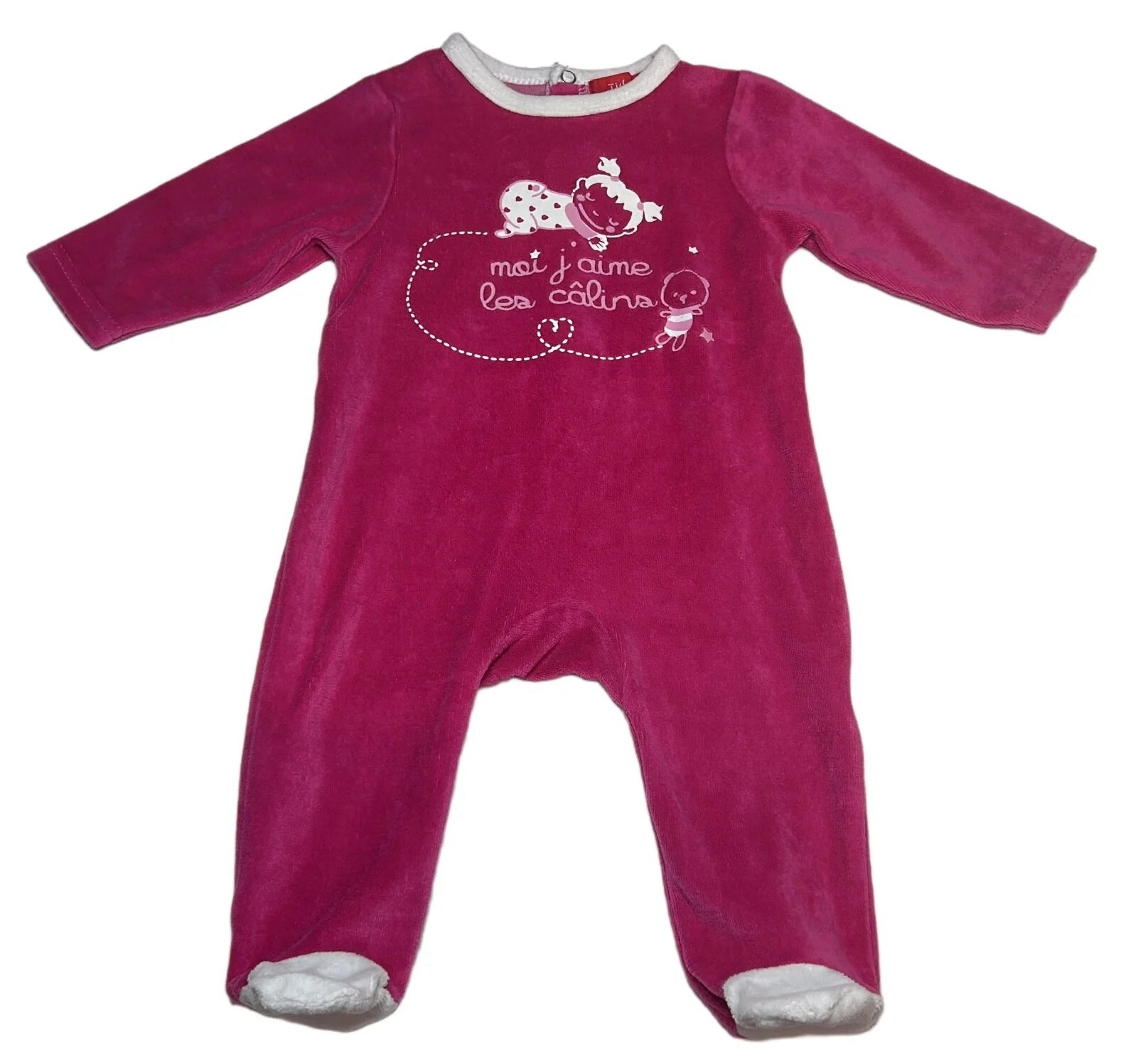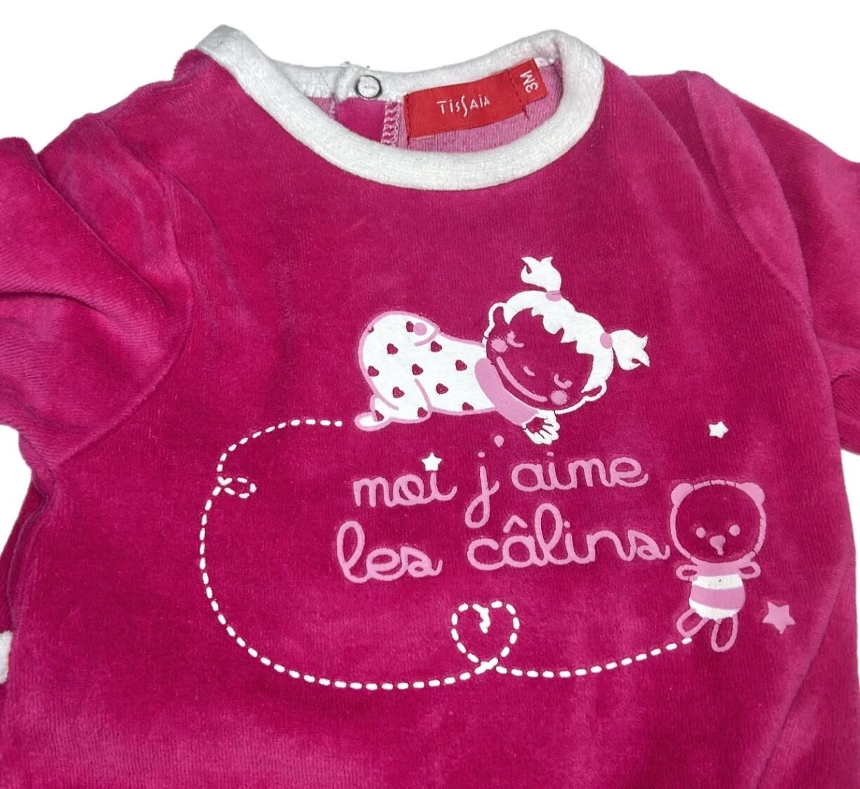 Pyjama velours ML fuchsia 3 mois Tissaia