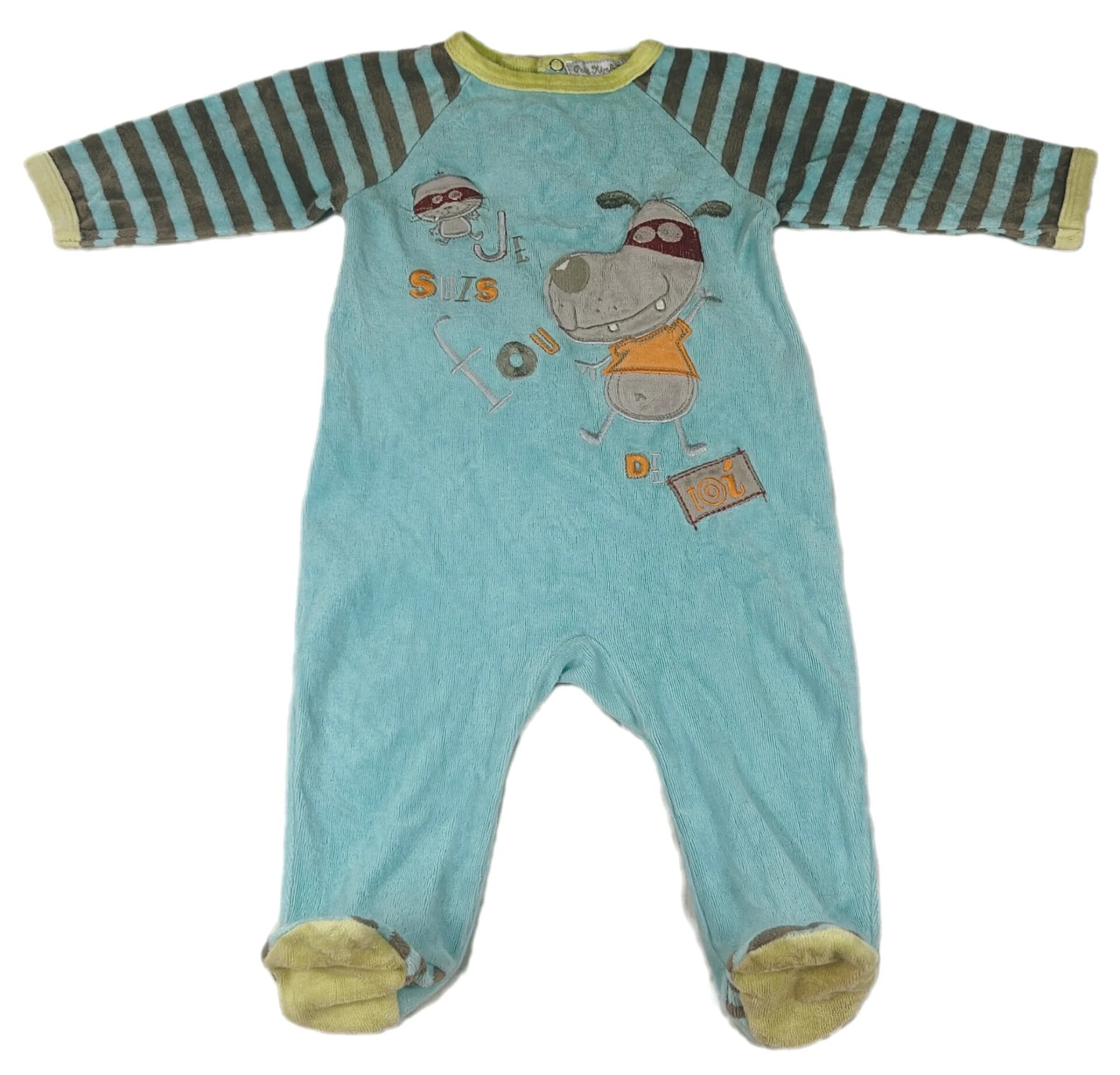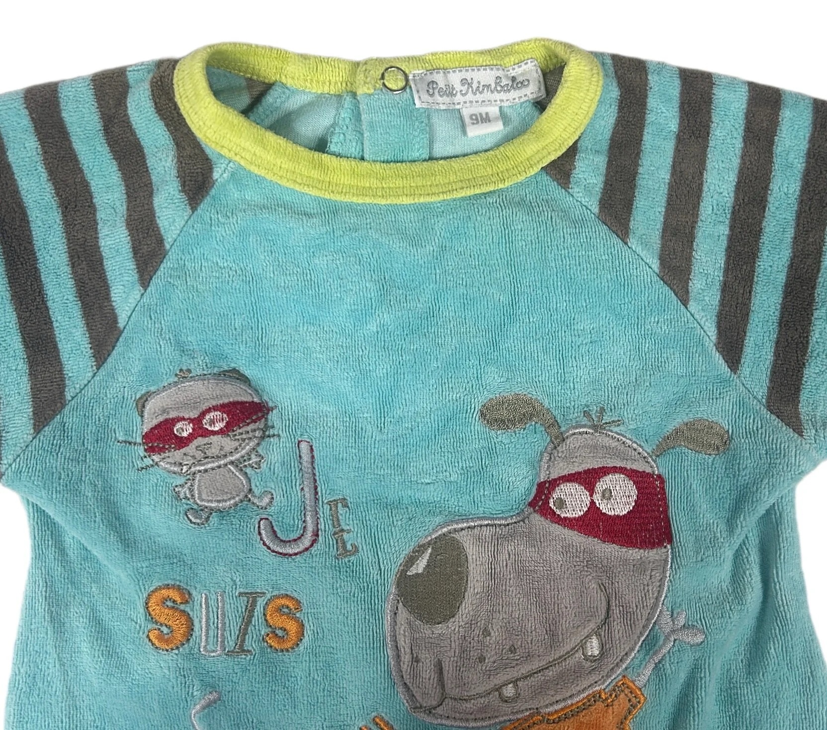 Pyjama velours ML turquoise 9 mois Petit Kimbaloo