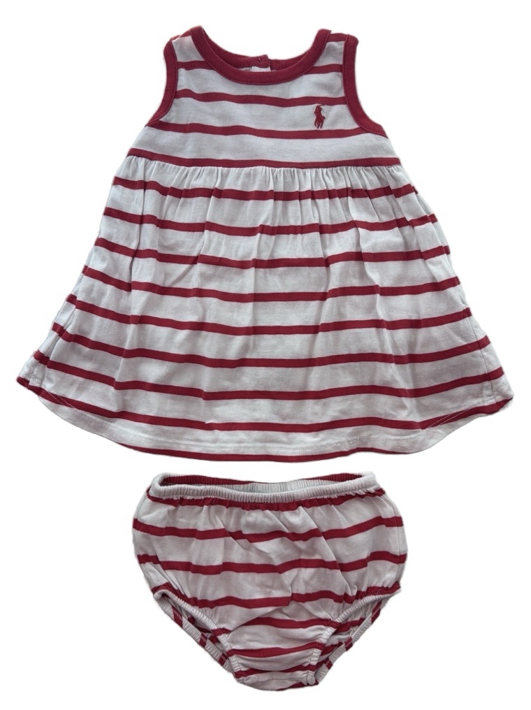 Robe légère SM rayé blanche et rouge avec bloomer 6 mois Ralph Lauren