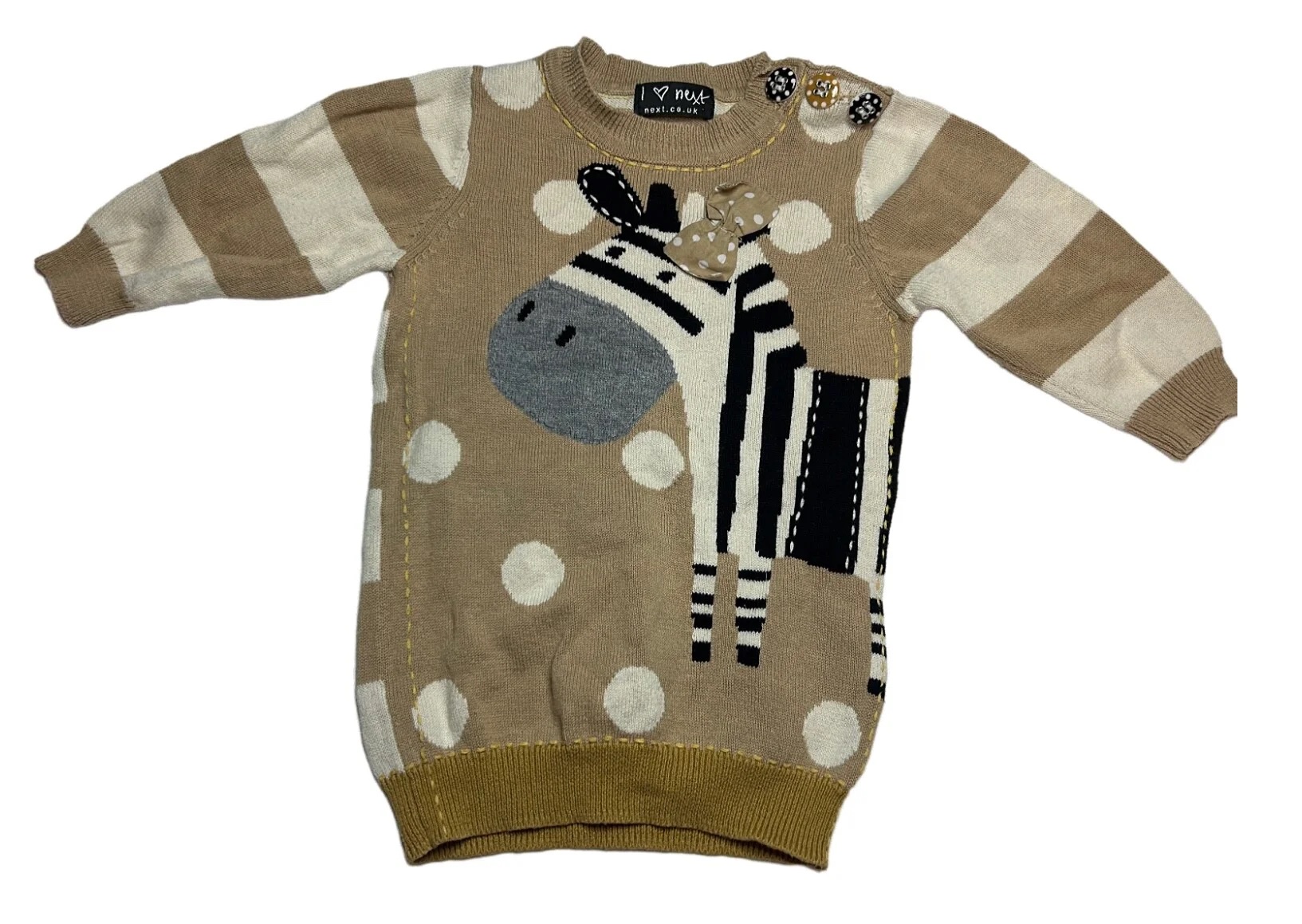 Robe pull ML en maille marron et beige 3/6 mois Next