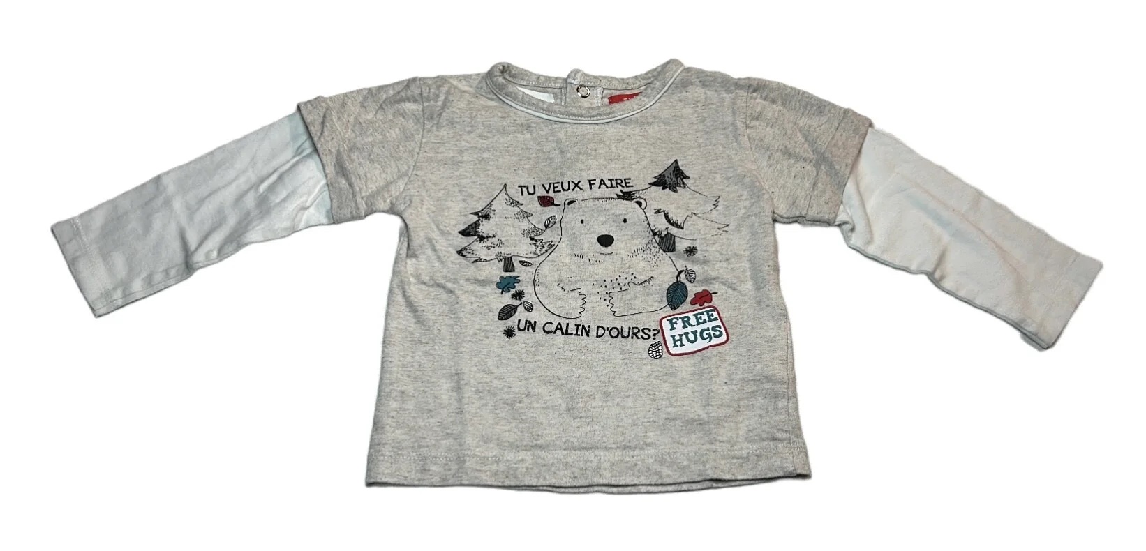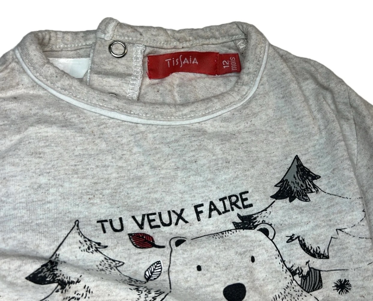 Tee-shirt ML blanc et gris 12 mois Tissaia