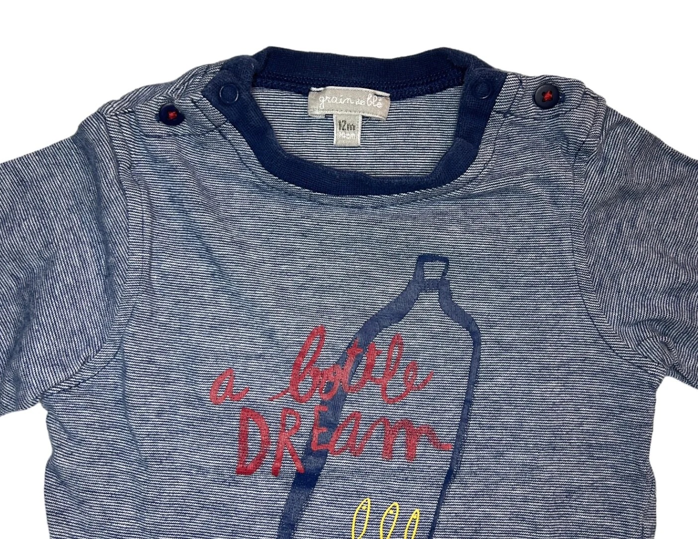 Tee-shirt ML rayé bleu 12 mois Grain de blé