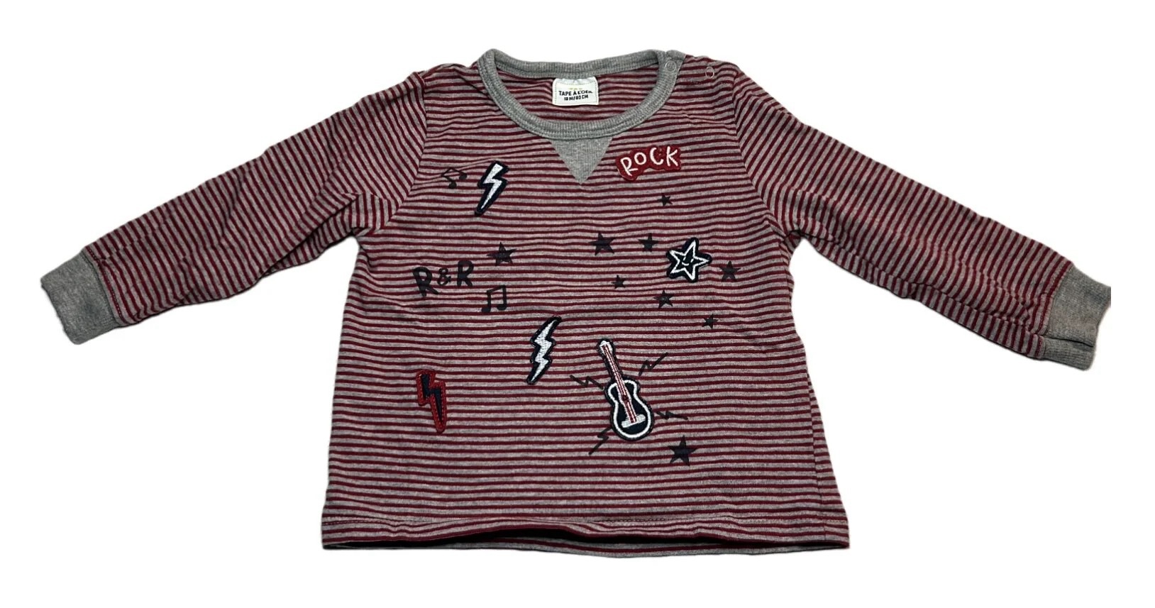 Tee-shirts ML rayé gris et rouge 18 mois Tape à l’œil